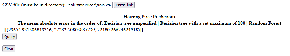 - Web application that provides an interface to allow users to upload CSV files containing similar real estate data to obtain precise predictions.